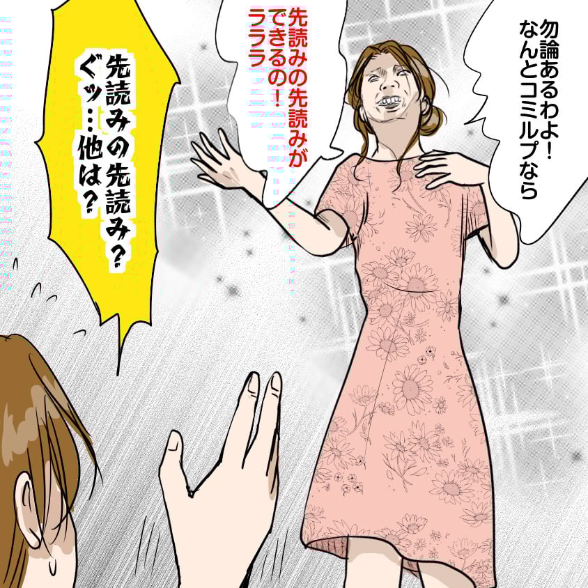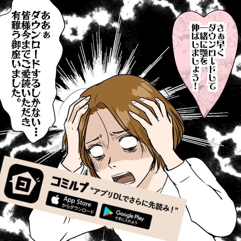 先読みの先読みといえば、コミルプ宣伝、愛美さんのバージョンまで出てきた🤣シャープな顎を目指すアプリになってる😂希さん、「ダウンロードするしかない」って言ってから「ご愛読ありがとうございました」なんだ。