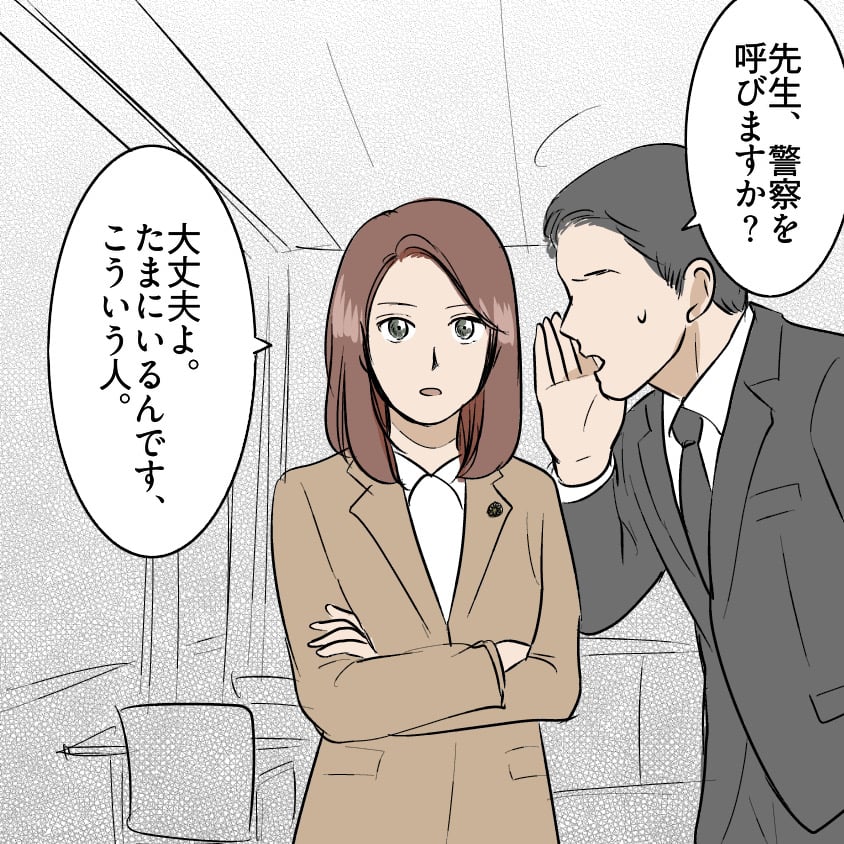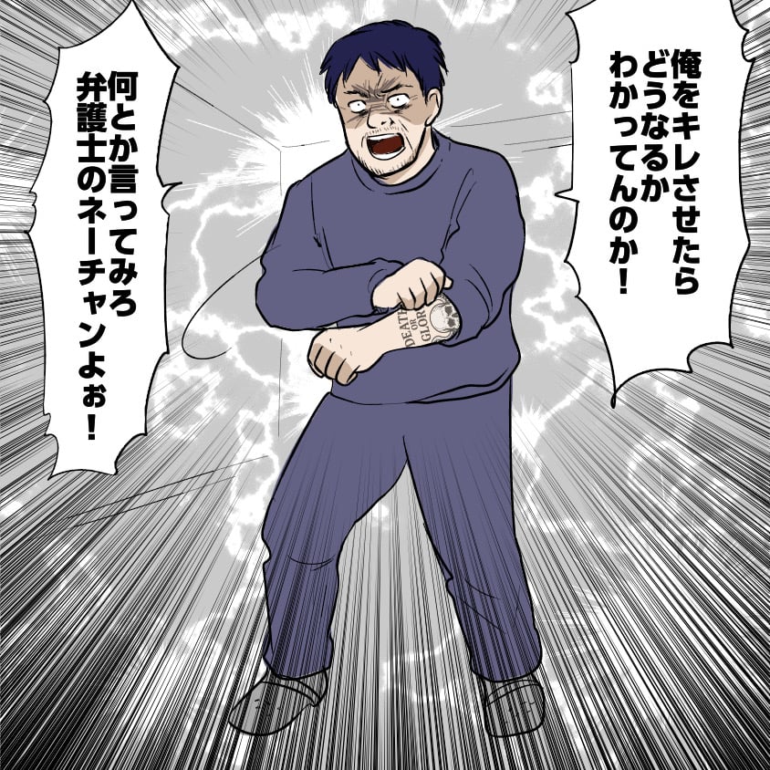 それを聞いた凱は、逆上して、その人に襲いかかる!? が、不思議な目をしたその女性は、凱の攻撃を見切り、手にしたスマホを振り下ろして、あんにゃろーの鼻っ柱をへし折って、「先生、あれは…?」「うーん、正当防衛。監視カメラの映像はいつでも提出できるように用意して」